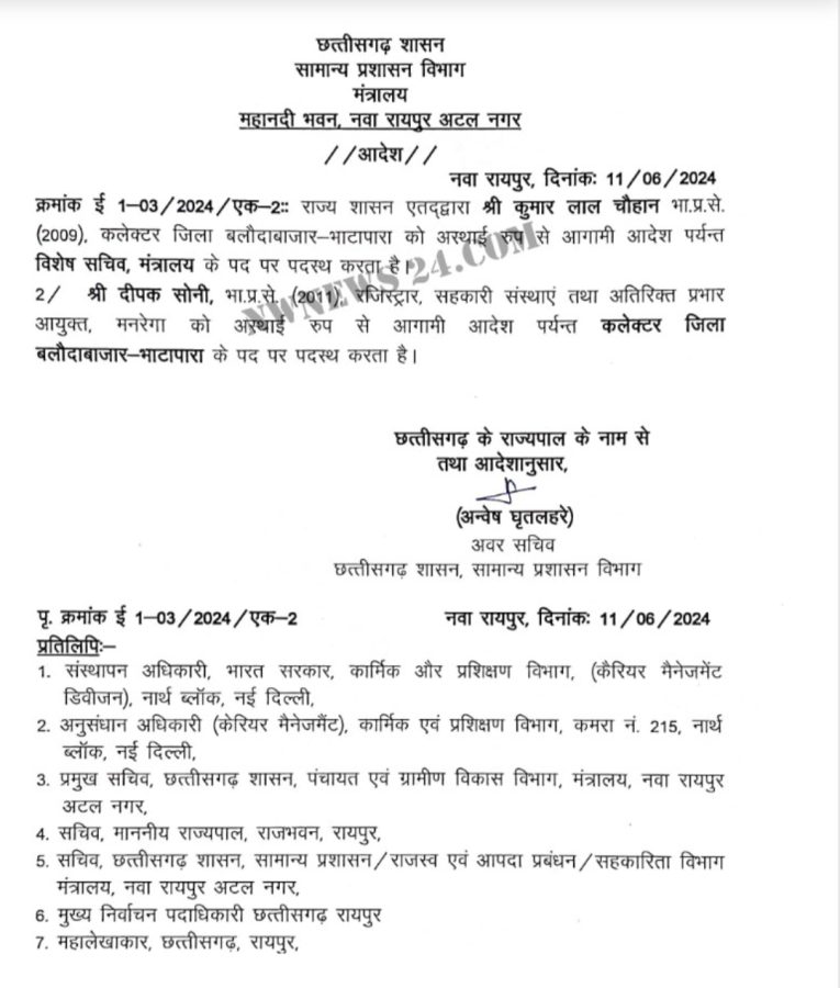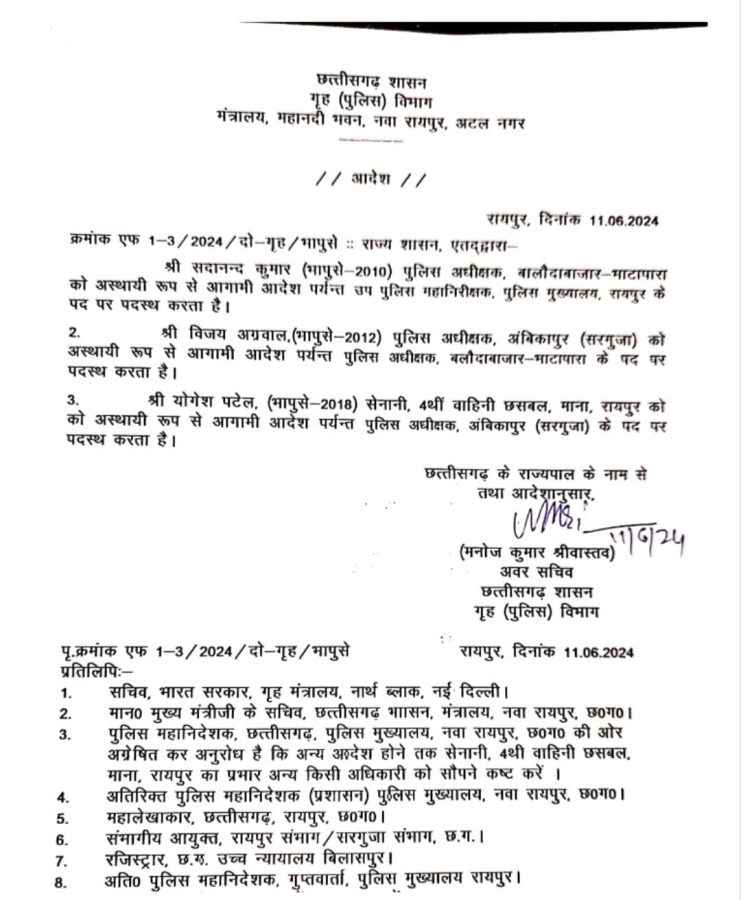 बलौदाबाजार के कलेक्टर एवं पुलिस अधीक्षक को हटाए, बलौदा बाजार के नए पुलिस अधीक्षक होंगे विजय अग्रवाल..