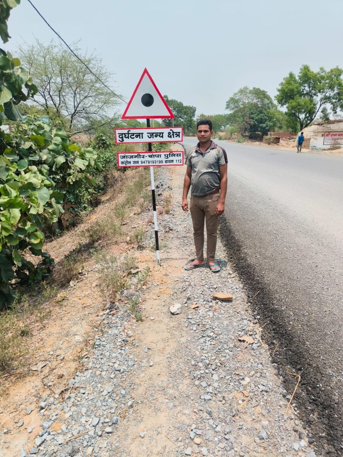 श्री विवेक शुक्ला (IPS) पुलिस अधीक्षक जांजगीर चांपा के निर्देशन में* वर्तमान में जिले में बढ़ती दुर्घटनाओं को मद्देनजर रखते हुए उचित बचाव के लिए जिले के दुर्घटनाजन्य स्थल (ब्लैक स्पॉटस) है, जहां आयें दिन दुर्घटना होती रहती है। जिसको गंभीरता से लेते हुए *अतिरिक्त पुलिस अधीक्षक श्री राजेंद्र कुमार जायसवाल एवं SDOP चाम्पा श्री यदुमणी सिदार एवम sdop जांजगीर श्री प्रदीप कुमार सोरी* के मार्गदर्शन में सड़क सुरक्षा को ध्यान में रखते हुए और दुर्घटनाओं में कमी लाने के उद्देश्य से पुलिस द्वारा दुर्घटनाजन्य स्थल (ब्लैक स्पॉटस) को चिन्हाकिंत किया जा रहा है। इसी क्रम में थाना अलकतरा पुलिस द्वारा थाना अकलतरा क्षेत्र के दुर्घटनाग्रस्त स्थल बलौदा रोड को चिन्हाकिंत किया जाकर साईन बोर्ड लगाया जा रहा है।
